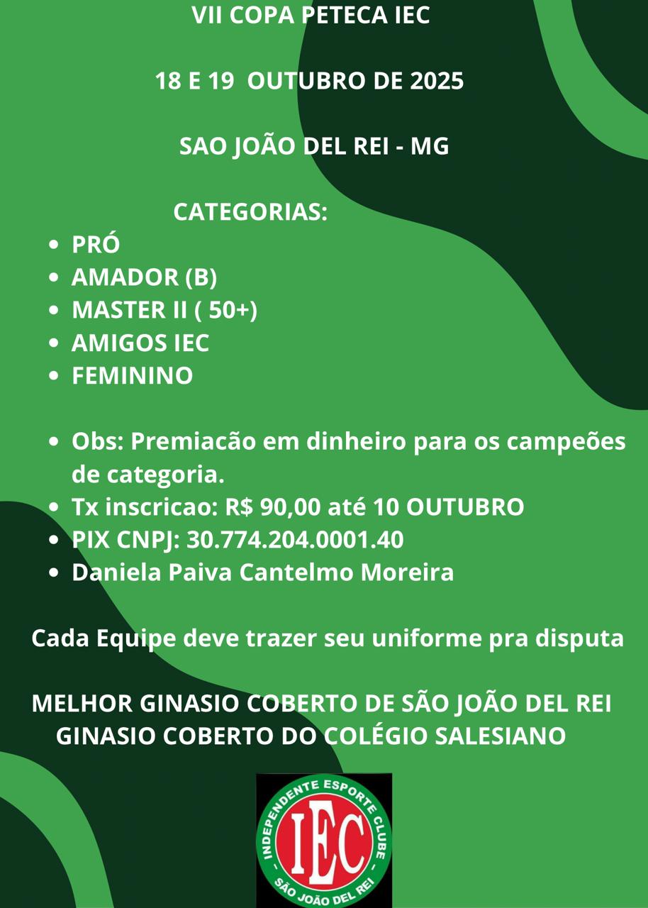 Max Min Clube Av. Gov. Magalhães Pinto, Montes ClarosO Campeonato Brasileiro de Peteca 2025 será realizado nos dias 20, 21, 22 e 23 de novembro, no Max Min Clube, localizado em Montes Claros – MG. Na mesma ocasião e local, o clube também sediará o 3º Circuito Brasileiro de Peteca, com disputas nas categorias: Livre, Amador e Iniciante. Contamos com a participação de atletas e entusiastas da peteca de todo …